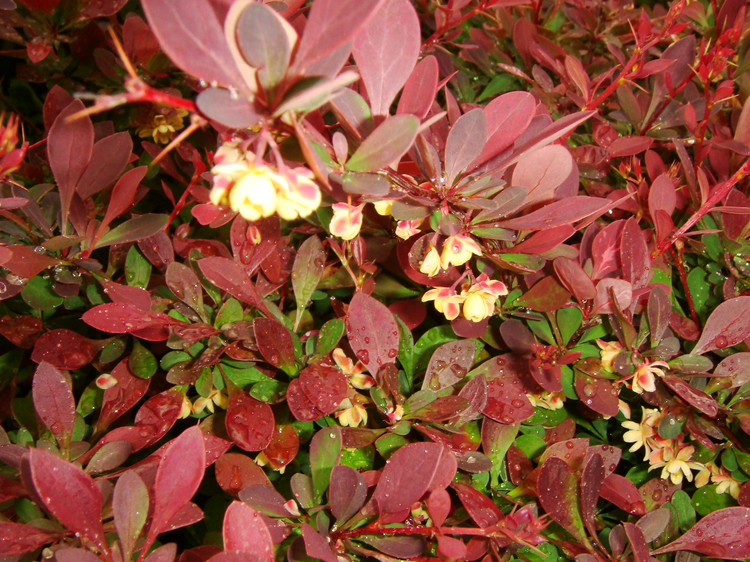 紫葉小檗(學(xué)名:Berberis thunbergii var. atropurpurea Chenault),別名:紅葉小檗,小檗科、小檗屬。原產(chǎn)于中國東北南部、華北及秦嶺。多生于海拔1000米左右的林緣或疏林空地。落葉灌木,枝叢生,幼枝紫紅色或暗紅色,老枝灰棕色或紫褐色。葉小全緣,菱形或倒卵,紫紅到鮮紅,葉背色稍淡。4月開花,花黃色。果實橢圓形,果熟后艷紅美麗。