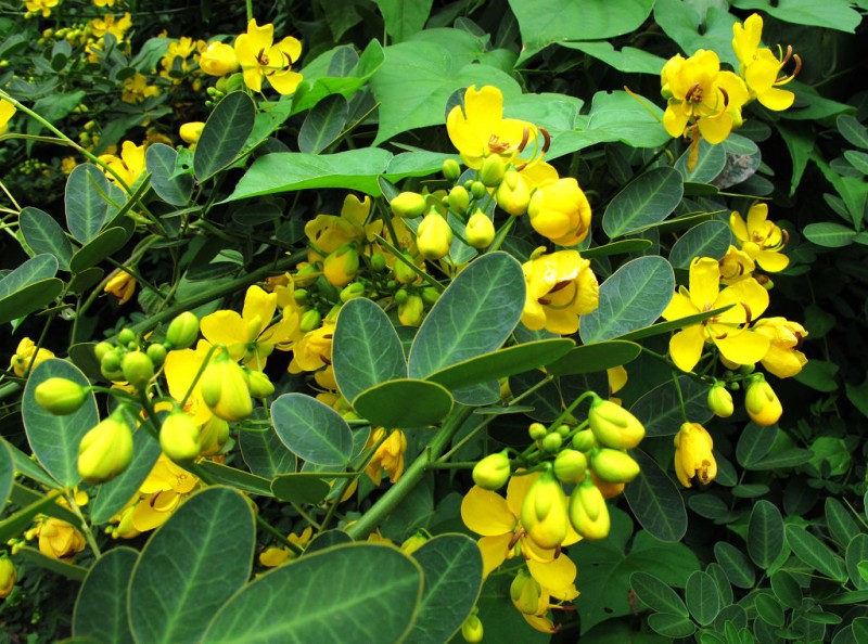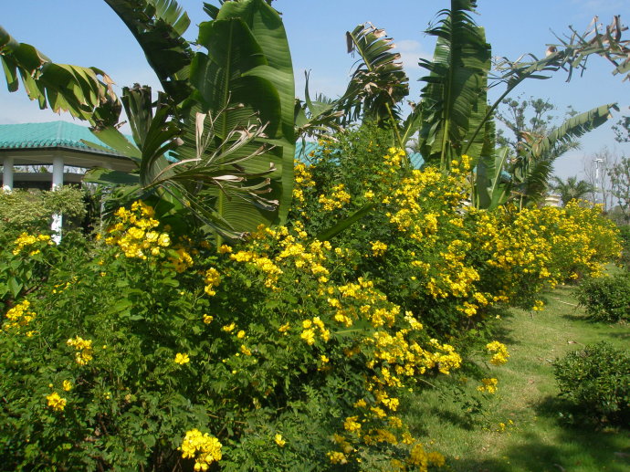 雙莢決明萌芽力強,適應性較廣,耐干旱瘠薄的土壤,容易栽培。常常植于池邊、路旁、廣場、公園和草地邊緣,也可點綴在草坪中間。穴的規格為40厘米×40厘米×30厘米,株間距為40厘米×40厘米。種植時每穴放入腐熟堆肥1~1.5公斤澆透水。對于地徑較細的苗木,采用竹子架扶助。以后每周淋水2次,當苗生長到1米左右時摘心并及時追肥(復合肥每株50克)澆水,使其粗壯,并形成較大的冠幅。花前和花期追肥2—3次,以補充磷鉀肥為主,也可噴0.2%的磷酸二氫鉀,使花朵肥大并延長花期。之后應立即修剪整枝,同時結合松土和追肥,保證來年開花質量。在整個生長期中,病害發生較少,用樂果、敵敵畏、馬拉硫磷藥劑防治蟲害。