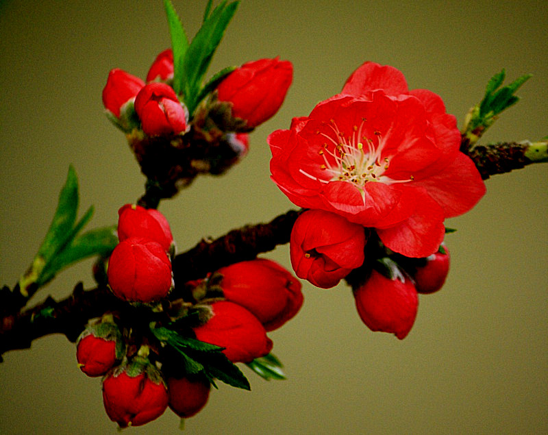 植株矮生,節間短,花芽密集。四月起為盛花期,花期半月左右。九月果實成熟。一般在冬季落葉后施基肥。春季花葉蔭發之前施以磷、鉀為主的綜合性液肥,花謝后施一次磷鉀肥,以后每隔半月左右施一次較淡的磷、鉀肥液。夏季停止施肥,九月以后施兩次綜合性肥液?;ㄩ_后,除保留部分長勢好、位置佳的花外,無用的花疏去,是壽星桃結出優良果實的關鍵。