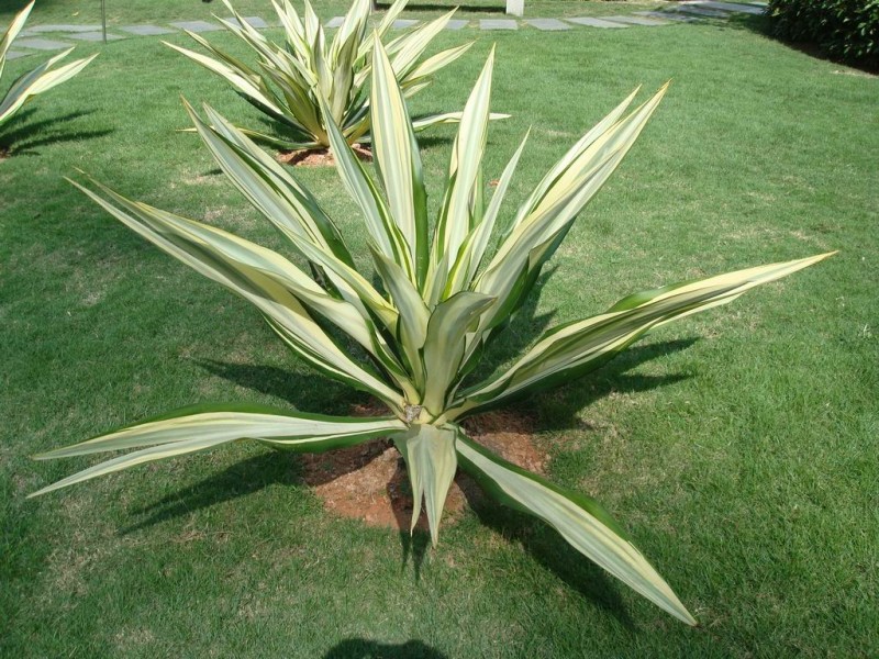 莖很短或不明顯。葉近蓮座狀簇生,堅硬,近劍形或長條狀披針形,長25-60厘米,寬2.5-3厘米,頂端具一硬刺,邊緣有許多稍彎曲的絲狀纖維。