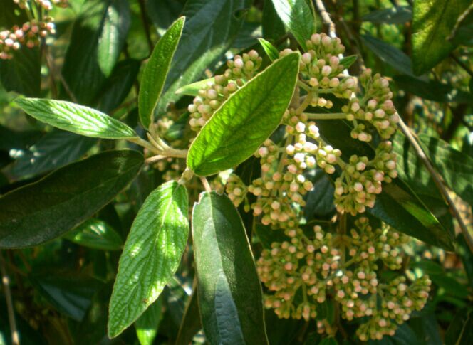 枇杷葉莢蒾樹姿優美,葉色濃綠,秋季果實累累,冬季葉片宿存,是華北地區少見的常綠闊葉觀賞灌木。適于孤植或叢植于小區綠地、路邊等采光較好的地方。