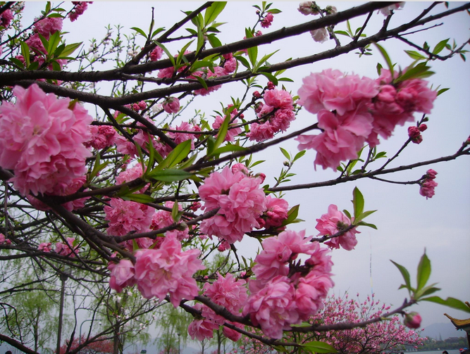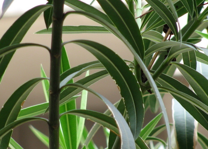 夾竹桃(學名:Nerium indicum Mill.)夾竹桃族夾竹桃屬常綠直立大灌木,高達5米,枝條灰綠色,嫩枝條具棱,被微毛,老時毛脫落。葉3-4枚輪生,葉面深綠,葉背淺綠色,中脈在葉面陷入,葉柄扁平,聚傘花序頂生,花冠深紅色或粉紅色,花冠為單瓣呈5裂時,其花冠為漏斗狀,種子長圓形,花期幾乎全年,夏秋為最盛;果期一般在冬春季,栽培很少結果。中國各省區有栽培,尤以中國南方為多,常在公園、風景區、道路旁或河旁、湖旁周圍栽培;長江以北栽培者須在溫室越冬。野生于伊朗、印度、尼泊爾;現廣植于世界熱帶地區。花大、艷麗、花期長,常作觀賞;莖皮纖維為優良混紡原料;種子含油量約為58.5%,可榨油供制潤滑油。葉、樹皮、根、花、種子均含有多種配醣體,毒性極強,人、畜誤食能致死。葉、莖皮可提制強心劑,但有毒,用時需慎重。