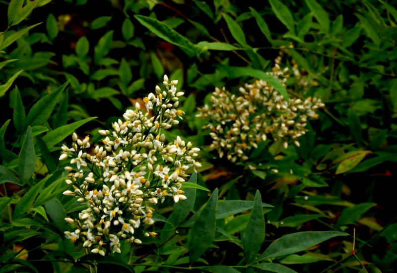 南天竹,又名南天竺,貴州俗稱野貓傘(學名:Nandina domestica),屬小檗科南天竹屬,原產于中國,是常綠植物,夏季開白花或粉紅色花,果紅色。其全株有毒。若誤食會產生全身興奮、脈搏不穩、血壓下降、肌肉痙攣、呼吸麻痹,意識模糊等癥狀。在日本,南天竹有消災解厄的意涵,是受歡迎的年花之一。