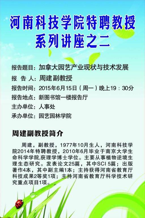 河南科技學院特聘教授系列講座之二:加拿大園藝產業現狀與技術發展