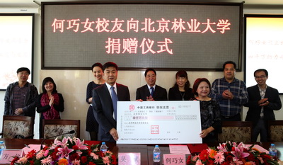 校黨委書記吳斌向何巧女頒發捐贈書及紀念銅牌。吳書記在講話中指出,何巧女從艱苦創業積累的資金中,捐獻出4000萬元支援母校。這是北京林業大學接受的最大的一筆個人捐贈。這筆巨資是對學校的激勵和支持,學校將捐贈切實用于建設國際知名,特色鮮明,高水平研究型大學的各項事業中去。吳書記在講話中用“東方繪河山,巧女繡綠色”高度評價了何巧女的創業歷程和事業成就。他說,何巧女的創業是從一枝花、一片綠、一條路開始的。她對專業的熱愛,對夢想的執著、對人生價值的追求,是一份寶貴的精神財富。他號召北林學子向她學習,執著奮斗、獻身事業,努力建設“能呼吸的城市”。